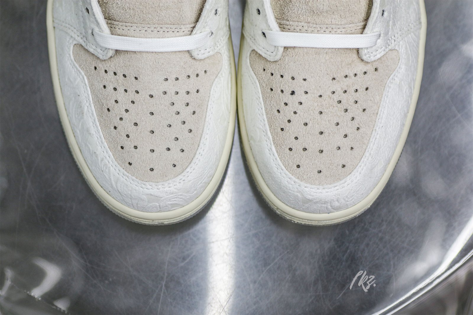 Chris Paul and Jordan Brand present the Air Jordan 1 Retro Low OG ‘Give Them Flowers.’ showcasing an intricate floral pattern pressed into the white leather upper. The off-white signature Swoosh arrives in shaggy suede. while the toe box and back tab in the same suede display a classic Wings logo. A interior of the woven Nike Air tag on the suede tongue delivers the phrase ‘Give Them Flowers.’